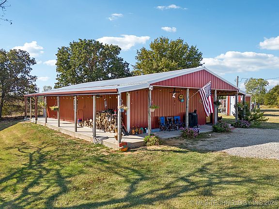Discover country living at its finest with this 3 bed 2 bath barndominium nestled on 20 acres of picturesque land. Ideal for those seeking a self-sufficient lifestyle, the property is fenced and ready for your horses, cattle and other animals. A 210-foot-deep well with Culligan filtration and solar panels provide sustainable living options. Culligan water system includes softening system, reverse osmosis system and tap water filtration. The property features a large 30x40 shop, triple carport, shed for animals, chicken coop and a serene pond.The rustic wood cabin-style interior adds charm and the open concept design enhances the sense of space and flow. Wood burning stove. Custom cabinets in kitchen. Huge utility room and washer/dryer remain. Pond view from covered porch. Brand new aerobic system. Embrace the tranquility and possibilities of rural life with this exceptional property!