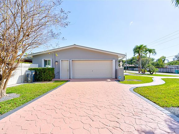 Immaculate and tastefully updated 4-bedroom, 2-bath home with a 2-car garage, perfectly situated on a 15k SF corner lot with a fenced yard. The lushly landscaped backyard is a private oasis, boasting a sparkling 35' x 24' pool with a paved deck, custom bench, fire pit, and a large terrace with bathroom access and a convenient pass-through window to the kitchen. Open layout showcases large neutral tiles, custom kitchen with wood cabinetry, SS appliances, double ovens, white quartz countertops, a wine bar station, and a cozy eat-in nook. Spacious bedrooms feature ample closets, while the private main suite offers a walk-in closet, a luxurious shower, and a bidet. Additional highlights include a pantry, family room, and laundry room. Impact windows and doors throughout. Easy to show!