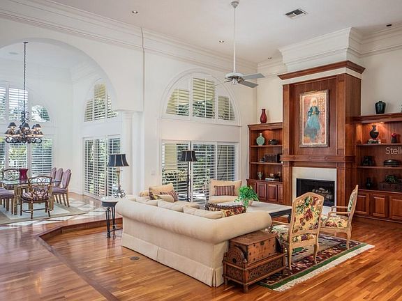 Overlooking Isleworth's signature Hole 2 and beautiful Lake Chase, this two-story estate offers an exceptional location within the gates of the renowned Isleworth Golf & Country Club. The three-bedroom home an open newly painted interior totaling more than 5,000 square feet of living space. Preceded by a brick paver motor court, the foyer opens to a light and airy living room with rich hardwood floors and built-ins, a stately fireplace and abundant light showcasing the panoramic golf views. Adjacent to the formal dining area, the kitchen features an eat-in breakfast nook, granite countertops and professional appliances by Sub-Zero, Thermador, Dacor and Asko. Additional gathering areas include the charming family room with brick fireplace and access to the lanai as well as the home's most unique interior space, the 19th Hole-style game room. Complete with a built-in media center, full bar and a temperature-controlled wine cellar, the game room offers plenty of space for lounge areas and gaming tables. Completing the first level are the master suite featuring a large bath with dual vanities, a walk-in shower and a garden tub, as well as a formal home office with floor-to-ceiling hardwood details and ample storage. Beyond the screened, covered lanai with built-in grill, the home offers a fenced open-air swimming pool and separate spa surrounded by manicured landscaping - all overlooking the panoramic golf and water views.