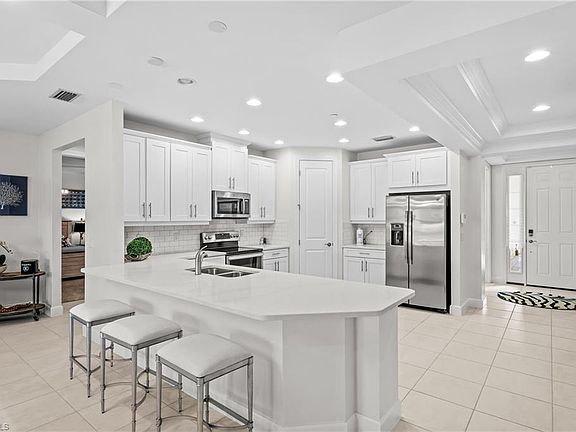 This professionally decorated Vitale open-floorplan model offers 2 bedrooms, 2 baths, and a one-car garage. The gourmet kitchen features a large Quartz island, white cabinetry, quartz countertops, and subway tile backsplash. The light-filled primary suite includes a walk-in shower, double vanities, and quartz counters, while the private guest suite has its own en-suite bath. Additional features include a family room with fireplace and built-ins, tray ceilings, impact-resistant windows/doors, Uxari security system, radon monitoring, and a transferrable Home Tech warranty. Step outside to the spacious lanai with serene lake views, or stroll to nearby satellite pools with BBQ grills and guest parking. A social membership (with golf privileges May–Oct) is included, giving access to the 18-hole course, pickleball, tennis, walking trails, dog park, fitness center, spa, salon, Bahama Bar, Barrel House dining, and year-round events. Live the resort lifestyle at Esplanade Golf & Country Club.