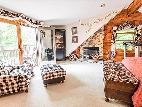 Imagine fishing in one of two stocked ponds or ice skating in the winter! Soaring ceilings and skylights combined with quality workmanship, plus 3 fireplaces, first floor laundry all on 10 acres. Two story stone fireplace with soaring ceiling, a sight to behold! Oversized master bedroom suite with fireplace, Jacuzzi tub, shower and walk-in closet. Fully appliance kitchen with cooktop and bow window eating area. Solid oak cabinetry. Second floor any sportsman's delight! A joy to show!1 Plus a full house generator, 3-car garage and shed.