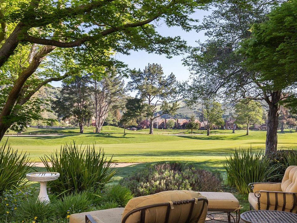 As you enter the brick enclosed garden patio you appreciate the uniqueness this freestanding townhome has to offer. Located just off the 1st fairway, this 3 bedroom 3 bath home has wonderful views of the fairway and mountains from the living room, dining area & master suite. All major living is located on the ground floor, including the kitchen, living room and master bedroom. Upstairs is one more bedroom suite with a remodeled bathroom. This home has Bamboo floors throughout the first floor, an updated kitchen with built-in shelving and a cook's island with a gas cooktop. The master suite includes an updated bathroom with separate vanity. Just off the living room you're welcomed onto a beautiful garden patio with views to the golf course and beyond. An additional bedroom and full bath are located on the main floor. Enjoy the Carmel Valley Ranch lifestyle from this exceptionally located townhome.