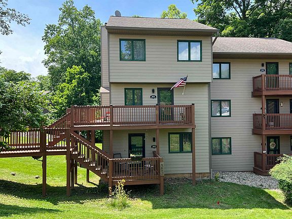 Own this cozy 1 bed/1 bath condominium at the Golf Club at Eagle Pointe. This lower level, end unit is in the village of Waters Edge II. Enjoy the updated kitchen with stainless appliances and a gas stove, and updated bathroom with a walk in shower. Other amenities include a screened porch, stackable washer/dryer, extra exterior storage on the deck, a glass storm door for extra light, and a wood burning fireplace. Embrace maintenance free living! Homeowners can enjoy the public golf course, restaurant, bar, and pool at the main clubhouse.