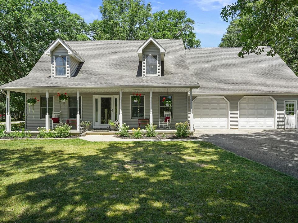 This is THE ONE!!! Unique Cape Cod on nearly an acre, corner lot. This 4 bed/3 bath home features many updates including flooring, kitchen countertops, backsplash, & new lighting throughout. Attached is an enormous 2.5 car heated (29'x31') garage with walk up attic storage/ bonus room potential. A cozy gas lighted wood burning fireplace graces an open concept living room/country kitchen, (space is currently being used as just a dining room), sliding doors lead way to enormous back deck. Main floor bedroom, living room, full bath, & finished laundry round out the main floor. Upstairs you will find 2 additional bedrooms, another full bath, & your Master bedroom featuring en suite master bath w/ whirlpool tub, & walk-in closet. Radiant heated 32'x48' pole barn,14' door with 16x32 finished area/rec room, kitchenette and 1/2 bath, plus even more attic storage!! With the Whole house fan, covered front porch, & the 4ft poured crawl this is Definitely THE ONE!