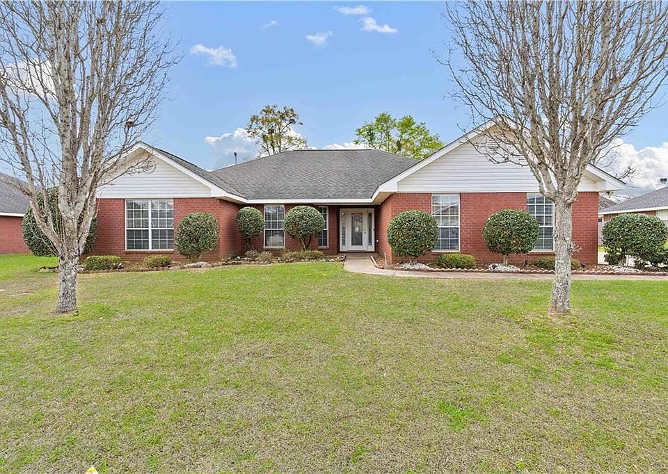 **Seller to install new roof** This immaculate brick 3 bedroom, 2 bath home located in Mobile County's highly desired public school district is MOVE-IN READY boasting neutral paint colors throughout and over 2,050 square feet just waiting for you to make your very own! Upon entering the front door, you will find yourself in the large welcoming foyer area with a view to the spacious living room featuring nice vaulted ceilings and a gas fireplace! The living room flows into your large kitchen with stainless appliances, a large kitchen island, large eat-in dining area and MORE!! The large master bedroom features a walk-in closet as well as a master bathroom featuring a double vanity and separate tub & shower. The two additional bedrooms are also very spacious with nice large closets. This home has so much to offer with the attached double garage as well as a driveway with a parking pad for additional/overflow parking, as you will need when you entertain your guests on your lovely covered back patio. Whether your vision is adding a pool, hot tub or possibly even a fire pit area, the possibilities are endless with all of the space offered in your nice private backyard! Call your favorite realtor today to see this West Mobile Beauty!!