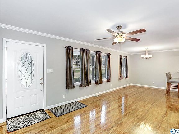 Charming, move-in ready home conveniently located in South Huntsville and loaded with updates! Living room with wood floors, crown molding and ceiling fan. Eat-in kitchen boasts tile floors, tile backsplash, ceiling fans and opens into the dining area. Family room is off the kitchen and features a gas log fireplace. The bonus room would make a great sunroom, office or play room! All 3 bedrooms offer hardwood floors and ceiling fans. Master bedroom has a walk-in closet and private bath. Spacious backyard with patio area and detached storage building. Roof was replaced in 2019! Interior with fresh paint throughout! Don't miss out on all this beautiful home has to offer.