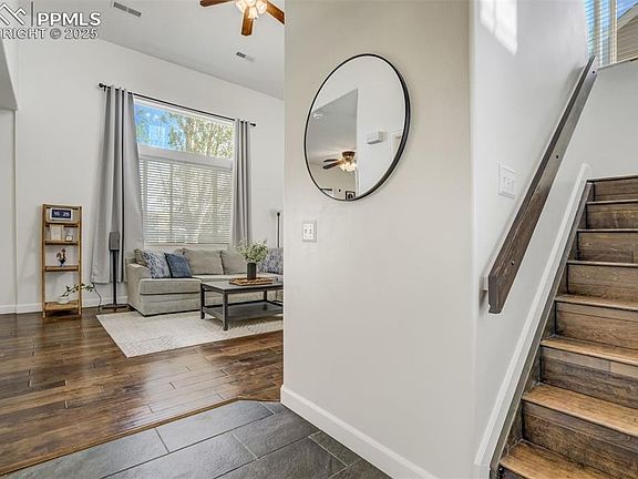 Updated, charming, and perfectly sized for effortless living. Nestled in a quiet, well-established neighborhood, this beautifully maintained home offers modern touches without losing its inviting character. The backyard? Well, it’s huge... and usable. It’s fenced in for privacy and has an oversized pergola-covered patio, so you can enjoy those perfect CO evenings. The front of the house has a quaint covered patio, perfect for a swing or a couple of rocking chairs. Inside, the kitchen features stainless steel appliances and opens right into the dining and living areas, so you can cook dinner and still keep an eye on the kids—or your guests who will definitely be amazed by the massive tall ceilings and incredible natural light. The engineered wood floors are updated (read: no carpet, yay!), so you can drop food on the floor without it being a whole thing. And yes, they’re gorgeous, sleek, and perfect for those who prefer easy maintenance without compromising style.The primary bedroom is the real deal—it comes with an adjoining remodeled bathroom (hello double vanities) and a huge soaking tub/shower with custom tile surround. Bedrooms 2 & 3 are also located upstairs and have a dedicated full bathroom as well. Not to mention, this location is prime. Close to parks for your outdoor adventures, a fire station (because safety first!), and both Carson & Peterson military bases just a few miles away. No HOA! The furnace was replaced in 2023; AC & water heater in 2021. Whole house water softener as well!