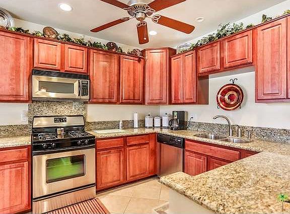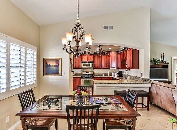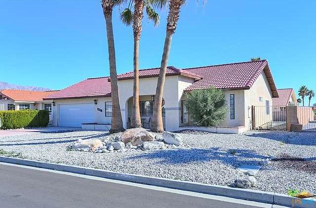 A very charming home, beautifully done inside, outside needs little landscaping. Open floor plan. Recessed lighting, granite countertops, bay window in bedroom, bullnosed walls, whirlpool stainless steel appliances, tile floors, pantry, double entry doors, French doors to backyard. You will love living in Mission Lakes with its close proximity to Palm Springs, apx. 20 minutes, beautiful resort style pool, salt water spas, tennis, golf for two is included in the low homeowners of only $295 per month plus $20 food fee,( both people must be on title), exercise room, pro shop, snack bar, and lovely clubhouse with fine dining. There is even a small motel for all those overflow guests!
