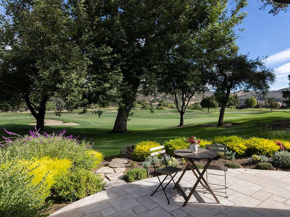 Boasting arguably the most expansive golf views of any Carmel Valley Ranch golf front home, this rare freestanding unit offers sweeping course and mountain vistas. Enjoy close-up views of the 1st green from the luxury of your main living areas where you can watch golfers chip & putt for that coveted birdie! Generous floor-to-ceiling windows in the living room, dining room and spacious, open kitchen fill this home with nature and light. Dramatic soaring, wood beamed ceilings open to the upstairs creates volume & architectural interest. Sitting at the end of a private cul-de-sac, the homes spacious 2,892sf includes two primary ensuite bedrooms (one up, one down), and a third main level bedroom with guest bath. A roomy den that opens to a private, fenced front patio with flagstone walkways and lush greenery. New wool carpeting throughout and a standalone 2-car garage are other highlights. Behind the gates of the popular CV Ranch community, your golf-front lifestyle awaits!