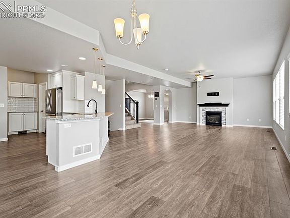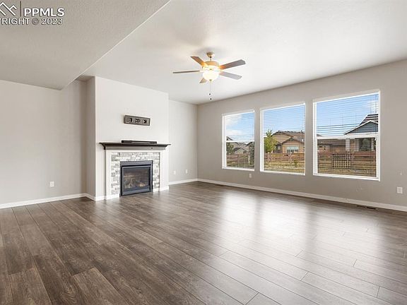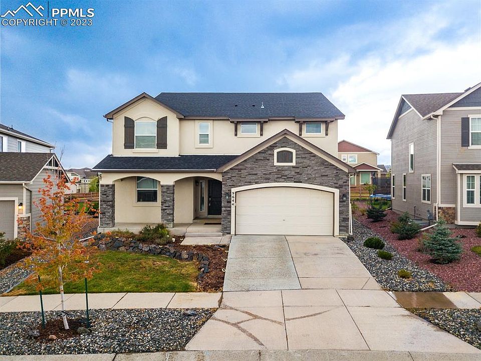 Beautiful home located in the desirable Wolf Ranch community. The main level of this residence showcases a secluded office, a spacious great room, both formal and informal dining spaces, and an expansive, fully-equipped gourmet kitchen with sleek granite, stainless steel appliances, and a breakfast bar. The mudroom comes with built-in seating and shelving, alongside a walk-in pantry. On the upper level, discover a spacious over-sized master suite, complete with an adjoining 5-piece bathroom that includes a roomy walk-in closet, linen closet, large soaking tub, dual sinks, and a separate shower with a comfortable seat and frameless glass enclosure. Additionally, three other generously-sized bedrooms with abundant closet space, along with a versatile loft, The laundry room features ample counter space and storage within its base cabinets. Air conditioning throughout the entire home as well as ceiling fans in both the family room and master bedroom. D-20 School District! Enjoy The community amenities that Wolf Ranch has to offer! Included are a swimming pool, splash pad, and an exercise facility. Explore the scenic 7+ miles of walk/bike trails and community events for added fun and connection. The location gives access to the Powers Corridor, providing easy reach to various Retail and Restaurant options.