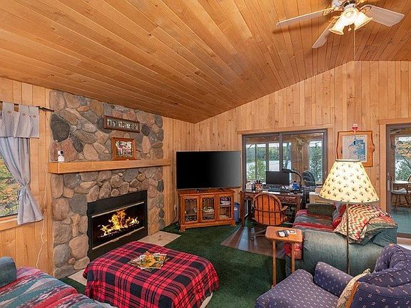 BIRDSEYE VIEW OF THIS WONDERFUL WILDERNESS SETTING ON BEAVER LAKE OF THE NAT LKS CHAIN! THIS 4 BED, 2 BATH CHALET HAS THE SOUGHT AFTER OPEN FLOOR PLAN MAKING FAMILY A PART OF THE ENTIRE CONVERSATION WHETHER COOKING IN THE KITCHEN, DINING OR STANDING BY THE FIRE IN THE ADJOING LIVING RM! SPEND 3 SEASONS IN THE ATTACHED PORCH WITH STUNNING VIEWS OF THE LAKE AND LANDSCAPED FRONT YARD WITH FIRE PIT. THE LOWER LEVEL IS A GREAT PLACE FOR GUESTS WITH TWO BED RMS, FULL BATH, REC RM AND ADDITIONAL LAKESIDE PORCH. THIS HOME JUST HAS A WARM N. WOODS FEEL WITH VAULTED T&G CEILINGS AND WALLS WITH PLENTY OF WINDOWS! ENJOY ATV USE, ACCESS TO STATE LANDS, A PAVILLION AND THE PRESQUE ISLE RIVER ALL WITHIN THIS 3600 ACRE SETTLEMENT. SELLERS ARE LEAVING THIS HOME MAINLY TURNKEY INSIDE AND OUT! INCLUDED FOR YOUR PLEASURE IS A 20' PONTOON BOAT, TRAILOR, ROWBOAT, PADDLE BOARDS, KAYAKS, WOODEN SWING, AND SO MUCH MORE!! SEE LIST IF INCLUSIONS. NEW ROOF, GUTTERS, GUARDS AND GAS LOG W/RECENT NAT GAS INSTALL