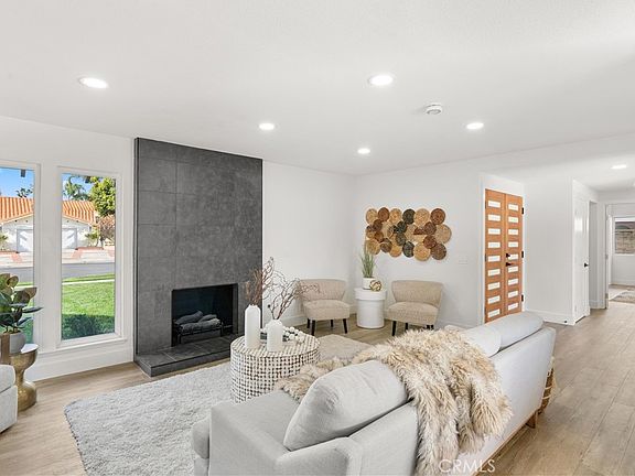 Discover your dream home in the heart of the sought-after Fountain Valley: a meticulously remodeled, single-story, 4 bedroom 2 bathroom residence that promises an unparalleled living experience. From the moment you approach, modern double doors invite you into a spacious front living area, immediately drawing your attention to the striking floor-to-ceiling fireplace adorned with custom tiles—a testament to the home's blend of elegance and comfort. The heart of this exquisite home is undoubtedly the chef-inspired kitchen, thoughtfully designed with a central island that doubles as a gathering spot, bathed in the warm glow of pendant lighting. Quartz countertops with a chic waterfall edge, coupled with custom wood cabinetry against a backdrop of spectacular tiled backsplash, set the stage for culinary exploration. Equipped with a high-end gas range, stainless steel appliances, and a dedicated bar area near the dining room—complete with wine storage—it's an entertainer's paradise. Tranquility defines the spacious primary suite, boasting a designer bathroom that offers a sanctuary with its stunning porcelain-tiled shower. The inclusion of double sinks in a new vanity, paired with a walk-in closet featuring custom cabinets, ensures both luxury and functionality. The secondary bathroom mirrors this sophistication, featuring a modern tub/shower with tile surround, double sinks, and direct backyard access. Embracing modern living, the home is adorned with luxury vinyl plank flooring for effortless upkeep, double-pane windows that flood the space with natural light, and added conveniences like recessed lighting, a brand-new furnace, AC, and roof. Step outside to the expansive backyard, an oasis with ample space for a pool and a generous patio designed for alfresco dining, capturing the essence of California living. Positioned within a distinguished school district and just a short stroll from fine dining and entertainment, this home isn't just a residence—it's a lifestyle waiting to be claimed as your forever home.