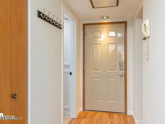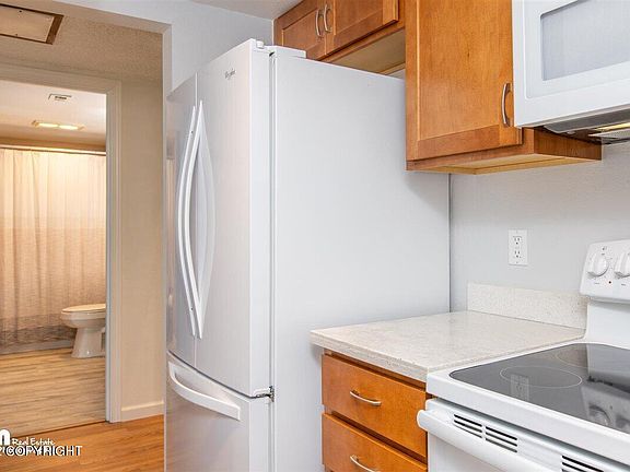 Beautifully updated condo in South Anchorage. This unit features new carpet within the last year, solid surface counter tops, updated kitchen cabinets, a beautiful barn door, and a updated bathroom. Additionally, this unit comes with a heated detached garage located right next to the front entrance. Relax on the deck with beautiful Alaska views! Condo sits between one condo and avacant storage closet giving this unit extra privacy with just one neighbor on one side. Tub tech will re-finish tub and surround prior to closing. Wont last long, book your showing today!
