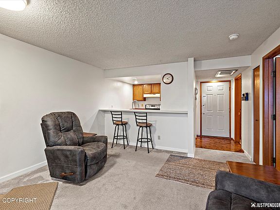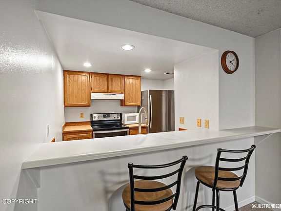 Beautiful South Anchorage Condo located on the 2nd floor. Carpet, washer & dryer, oven, hot water heater, sliding glass door & deck are ALL only two years old! Heated garage & plenty of storage! Sorry--NO pets.