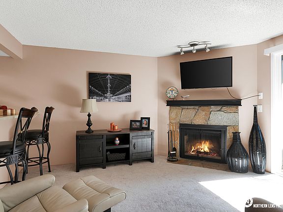 Compact, Convenient, Cutie on 2nd floor w/heated garage. Kitchen w/all the necessities, even a pantry & breakfast bar. New vinyl window & sliding glass door. Wood burning fireplace for those cozy winter nights. East facing deck shaded by two mature deciduous trees looking out at bike/walking path. Storage on deck. Tranquil well insulated unit. Stackable washer & dryer in unit. Secure building.