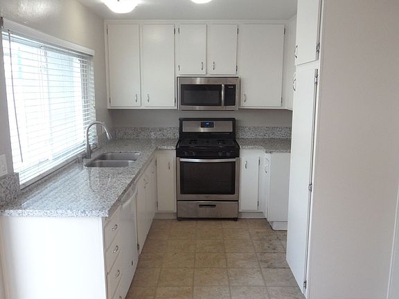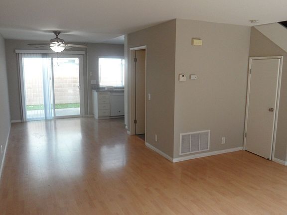 Great two-story Huntington Beach Town-home! Fresh two tone paint throughout, hard flooring downstairs, dual-pane windows with "magic" retractable screens throughout, large living room, dining area with ceiling fan which opens to spacious private enclosed patio. Bright kitchen with granite counters, stainless steel sink, built in microwave, gas Stove, and dishwasher. Inside Laundry room, with guest bath downstairs. 2 large bedrooms upstairs, and full bathroom. One of the bedrooms has wall to wall closet, the other has two closets and both have ceiling fans. Single car garage with automatic opener and plenty of street parking for 2nd car. Community pool and tot lot close by, trash included in the rent. Only 3 miles from the Beach!!