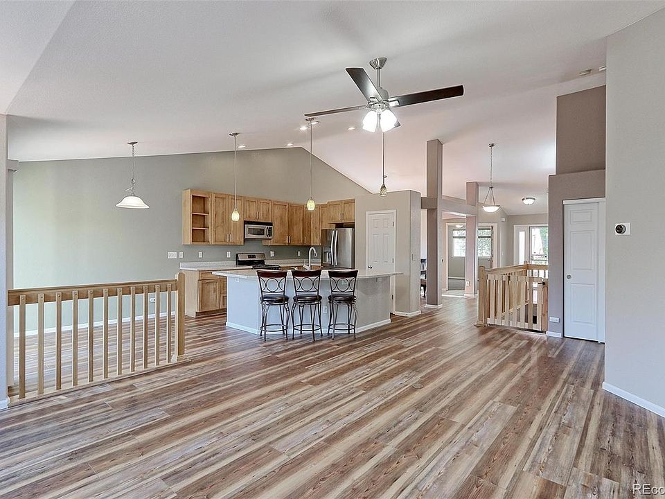- Ceiling Fan(s), Corian Counters, Eat-in Kitchen, Five Piece Bath, High Ceilings, Kitchen Island, Open Floorplan, Pantry, Primary Suite, Smoke Free, Vaulted Ceiling(s)