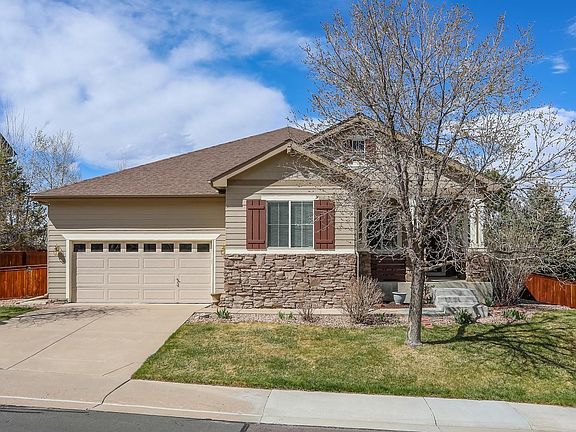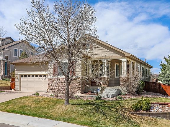 Welcome to this incredible 3 bedroom, 2 bathroom home located on a prime lot! This home offers high ceilings, plantation shutters & newer carpets w/a 20 year warranty. High ceilings create an open flow throughout the dining rm & living rm & the art niche creates a great space for entertaining guests. Large windows & an open concept offer a light & bright feeling in the family rm & kitchen. Family rm offers a gas fireplace w/tile surround & an entertainment niche. Eat-in kitchen, w/granite countertops & 42in. crown molded cabinets. Main floor master offers 5-piece bth w/soaking jet tub & custom walk-in closet. 2 secondary bdrms & a main floor full bthrm. Unfinished basement offers a rough-in bthrm. The home also offers central hot water & a radon mitigation system. The unique neighborhood of Trailmark offers 17 acres of walking trails, lakes & community & is surrounded by 1500 acres of open space. Easy on & off to C-470, shopping, light rail & outdoor activities.