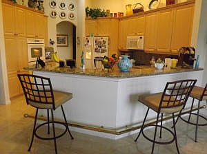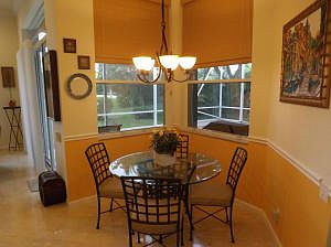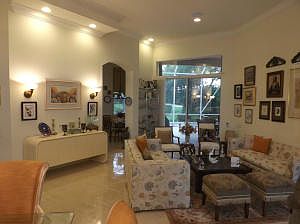 PRIVATE CORNER LOT. ENJOY SERENE LAKE VIEWS FROM THE OVERSIZE SCREENED PATIO. BEAUTIFUL KITCHEN WITH EXTENDED GRANITE COUNTERS WITH UPGRADED CABINETRY. CUSTOM HUNTER DOUGLAS WINDOW TREATMENTS. 18'' GLOSSY TILE AT DIAGONAL AND 6'' CROWN MOULDING IN ALL LIVING AREAS. ELEGANT DOUBLE GLASS DOOR ENTRY WITH DECORATIVE INLAY. DESIRABLE CUSTOM FEATURES INCLUDE LARGE PICTURE WINDOW, BUILT IN SOFFITS WITH ACCENT LIGHTING,''CREMA MARFIL MARBLE'' MANTLES, ELEGANT COLONIST INTERIOR PANEL DOORS, ARCHED HALLWAY ENTRIES AND ARTISTIC, YET SUBTLE HAND PAINTED BATH DESIGNS. PRIVATE MASTER BEDROOM AND GUEST SUITES. NEW HIGH EFFICIENCY A/C, ACCORDION HURRICANE SHUTTERS,CENTRAL VACUUM AND SPEAKER SOUND SYTEM. COME SEE THIS IMMACULATELY MAINTAINED, OPEN & AIRY SHOWPLACE! (SEE SUPPLEMENT FOR FULL REMARKS)