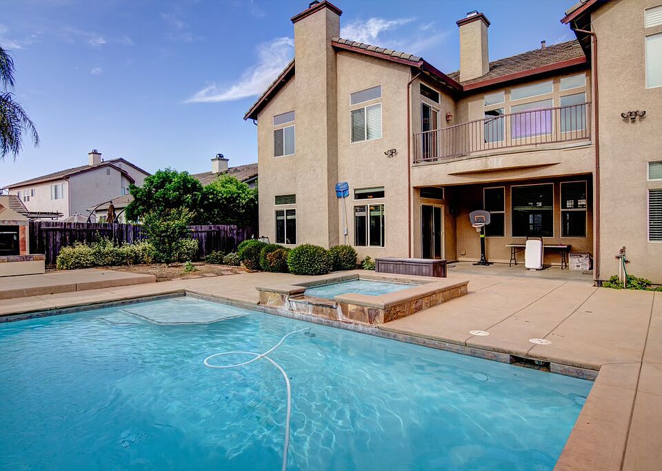 Rambling family home with formal living & dining rooms, butlers pantry to gourmet kitchen with island & prep sink. Spacious family room with fireplace & slider to amazing back yard with pool, spa, outdoor fireplace & kitchen bar area w/ built in BBQ and sink! Full bed with bath & walk-in closet downstairs. Bath and laundry with door for pool access. Large open loft upstairs with slider to patio overlooking the pool. 2 bed jack & jill bath combo with separate vanities & walk-in closets & a shared shower room. Another 2 bedrooms share a jack & jill bath with double sinks. Master suite has private balcony, huge bath with his & hers vanities, mirrored walk-in closet, and large sitting room or dressing room off bath with patio access. A MUST SEE!