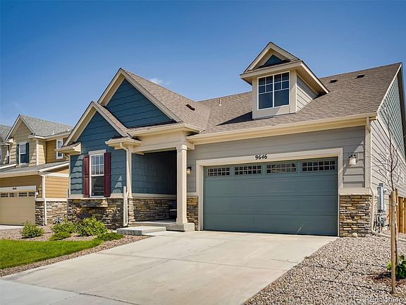 Highly sought after Meritage Timberline 4 Bed, 3 Full Bath Walk-out Ranch in Stonegate! WOW! Practically new, this exemplary property is what everyone is looking for and can't find right now! Better hurry! Great floor plan w/ finished walk-out basement & tons of upgraded finishes! Large chef's kitchen w/ gorgeous, upgraded Quartz counters, huge island w/ ample seating, durable & stylish vinyl plank flooring, custom tile backsplash, upgraded oil rubbed bronze pendant lighting, upgraded cabinets w/ crown details, stainless appliances w/ 5 burner gas cooktop & stainless hood, 2 ovens & microwave, stainless dishwasher & french door refrigerator w/ freezer drawer. Solid pantry for storage! This kitchen ROCKS! Large, open concept Living Room w/ ceiling fan & custom built fireplace, floor to ceiling tile fireplace surround and custom mantel! Large light & bright sliding glass door opens to a large deck great for grilling. Super inviting ample size Dining Room w/ upgraded oil rubbed bronze light fixture & gorgeous vinyl plank flooring. Great space for entertaining! Large Master Bedroom w/ great natural light, upgraded ceiling fan, blinds & more! Huge 5 piece master bathroom w/ upgraded 18" ceramic tiles, Quartz counters, his and hers wash basins, large walk-in shower w/ large bench, linen closet, upgraded oil rubbed bronze lighting & plumbing fixtures & not to mention a HUGE 8'7" x 10' walk-in closet! Large & inviting study w/ custom glass french doors, ample natural light, upgraded carpet & pad! Great space to work from home! All 3 secondary beds are nicely appointed w/ ceiling fans & more! ENORMOUS family room in the finished walk-out basement w/ access to a custom stamped concrete 12' x 20' patio! Endless possibilities! Gaming, movies, Entertaining! Whole house vac, Tankless H20 heater! Professional landscaping, Garden Beds all in an AMAZING location, near schools, highways, transit, shopping, dining, open space & trails in highly coveted Parker and moreover Stonegate!