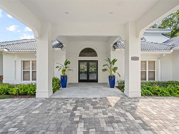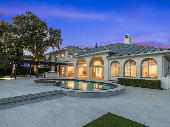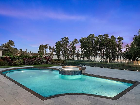 Stunning golf and lake views and beautifully updated grounds are hallmarks of this elegant Isleworth estate. Nestled along the front nine overlooking Isleworth’s 2nd fairway and beautiful Lake Chase, this two-story home spans more than 4,800 square feet and features modern finishes throughout. Beautiful porcelain tile travels throughout the main level from the spacious living room with an oversized modern built-in featuring slate stonework and lit shelves. The spacious master suite features a large sitting area and an en-suite bathroom with dual vanities, a walk-in closet, modern soaking tub and separate walk-in shower. Completing the main level are the home office, formal dining room, elegant powder bath and center-island kitchen with casual dining area. Two additional bedrooms with balcony access are on the upper level. Step outside and discover a newly reimagined outdoor living experience. The expansive pool deck has been fully updated with sleek new pavers, while fresh turf and lush landscaping create a vibrant backdrop for relaxation and entertaining. A striking glass wall encases the pool area, maximizing panoramic views of both the golf course and the lake. The outdoor kitchen has been thoughtfully upgraded with new granite, a built-in grill, pizza oven, sink, and designer lighting—seamlessly blending function with style. Enjoy evenings around the modern fire pit, take a dip in the resurfaced pool with its brand-new heater, or unwind in the extended backyard, which offers an additional 15 feet added to one side of the property. Every detail of this outdoor transformation has been designed to enhance both beauty and livability, making this property the perfect retreat for year-round enjoyment.
