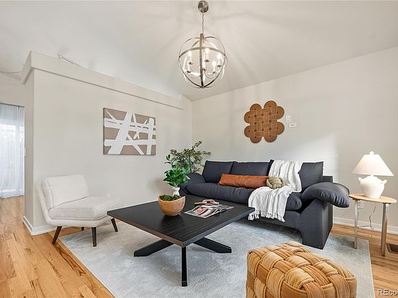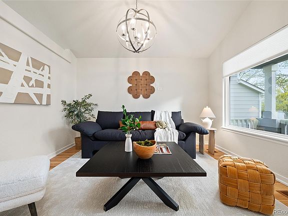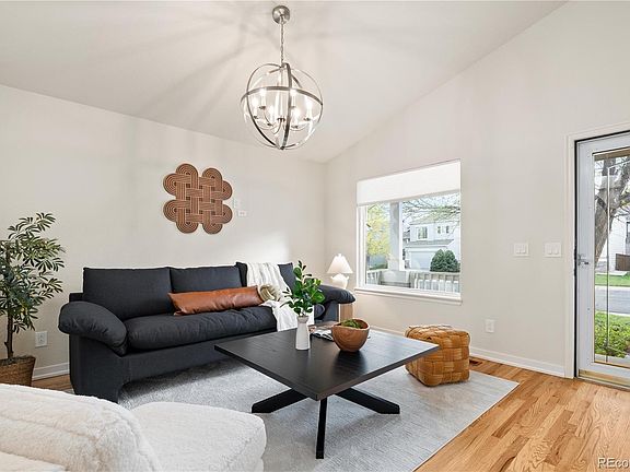 This beautiful ranch home offers an open concept layout, accentuated by high ceilings and new windows that bathe the interior in natural light. The house features refinished hardwood floors throughout and a modern kitchen equipped with new matching stainless steel appliances. Sliding doors open to a beautifully landscaped backyard and patio complete with a pergola. The bathrooms have been updated with quartz and quartzite countertops, enhancing the clean and contemporary feel of the home. A large unfinished basement offers ample storage or the potential for additional living space. The prime location offers easy access to local amenities including the community recreation center, schools, and parks. This home also has a New Sliding Glass Door and New Windows throughout the Main Floor. Walking paths are just a stroll away, leading to Highland Heritage Park, Cheese Ranch Historic and Natural Area, and Hound Hill Dog Park, making it easy to enjoy the great outdoors.