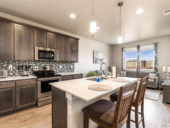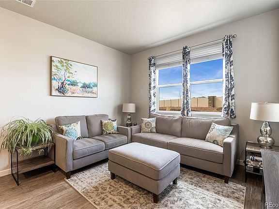 Welcome home to Thornton's 'River Valley Village'. This light & bright contemporary townhome features vinyl plank flooring throughout & an open layout, ideal for entertaining. The well-appointed kitchen boasts maple cabinetry, SS Frigidaire appliances, quartz counters, an oversized center island & pantry. Retreat to your spacious primary suite complete with vaulted ceilings, a walk-in closet with custom built-ins & ensuite bath with walk-in shower. Enjoy relaxing on the back patio which overlooks community greenspace. The low HOA includes many resort-style amenities including a clubhouse, fitness center, outdoor pool, hot tub, playgrounds & volleyball courts. Why wait for new when you can own a 2020 built property right now? Hurry & book your showing today!