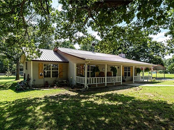 Updated farmhouse on 5 acres! Located 10 miles from Walmart home office, this 3 bedroom 2 bath has a large living area and master bedroom, eat-in kitchen with stainless appliances, big deck for entertaining guests & a covered front porch for morning coffee! Updates include new interior paint, trim, luxury vinyl wood look flooring and light fixtures. Well insulated with a wood burning stove, low utility bills. New fencing around the 5 usable acres a 23x56 shop building with electric, a she shed, above ground pool with new decking and a chicken coop. A must see!
