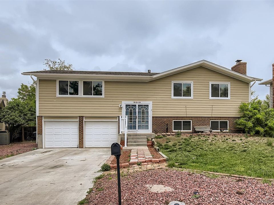 Beautiful Skyland Village Home located in a Cul-de-sac with Mountain Views and located near park! 4 bedrooms,3 bathrooms, 2 car garage with a huge backyard, garden and shed. Main level open floor plan features hardwood floors, large kitchen with island and granite tops, dining area, family room, primary bedroom with 3/4 bathroom, 2 additional bedrooms and updated full bathroom. Lower level living room with fireplace, 4th bedroom, full bathroom, laundry room with access to garage and large utility room. Plenty of parking with extended driveway.