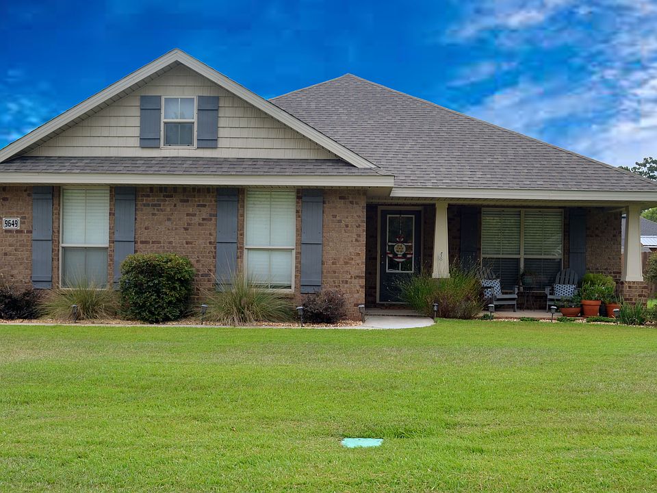 Well maintained move-in-ready 3 bed 2 bath home located in the Hollowbrook Subdivision. The kitchen has stainless steel appliances, breakfast bar, and an attached dining area. The kitchen and bathrooms have solid wood cabinets, tile, and granite counter tops. There is new wood look tile throughout the large living area which features vaulted ceilings, electric fireplace, surround sound, and a built in entertainment cabinet. The wood tile runs throughout the spacious master suite and includes a tray ceiling, dual vanity sinks, walk-in closet, jetted tub and separate shower. Spend your down time under the large back covered patio equipped with two ceiling fans and an extra concrete patio. The backyard is fenced and has plenty of room for enjoyment. The driveway is very accommodating making it easy to park two vehicles in the double garage and any additional vehicles outside. The owners have done a amazing low maintenance landscaping out front. The neighborhood has low HOA dues which cover the community pool and beautiful common area. HVAC installed in 2019 with a 10 year warranty. Home is also equipped with Hurricane Shutters.