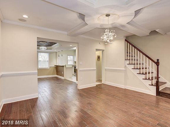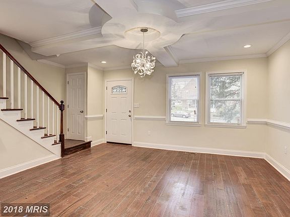 Beautiful rowhome with modern style and convenience. ML featuring crown molding, chair railing, tray ceiling, inspired coffered ceiling&handscraped hrdwd flrs.Kit boasts 42~cabs, pendant lighting, breakfast bar, SS appls&granite counters. Ascend upstairs to find three bedrooms w/curved ceiling&full bath.The LL family&game rms w/powder room&walkout.Landscaped grounds, rear fenced yard, &front porch