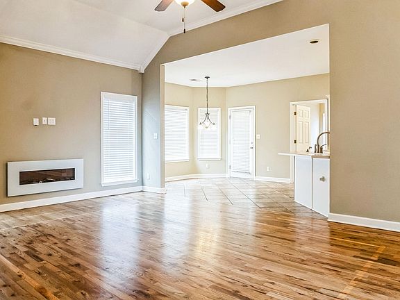 Discover the perfect blend of classic charm and modern convenience in this stunning brick home. With three bedrooms and two full baths thoughtfully situated on the main level, this property offers a functional layout ideal for today's lifestyle. As you enter, you'll find the first of the three bedrooms, which also makes an excellent home office. The spacious great room features beautiful wood flooring, vaulted ceilings, and a modern fireplace, seamlessly flowing into the dining area and kitchen. The kitchen boasts a breakfast bar as well, perfect for casual dining or entertaining. The primary suite is a private retreat, complete with an ensuite bath with large soaking tub, separate walk-in shower and a walk-in closet. Upstairs, a large bonus room awaits, ready to be tailored to your needs—whether as a game room, hobby space, or a 4th bedroom. Step outside to the fully fenced backyard, where lush green space and landscaped surroundings create a serene outdoor haven.