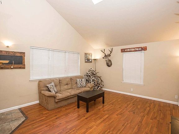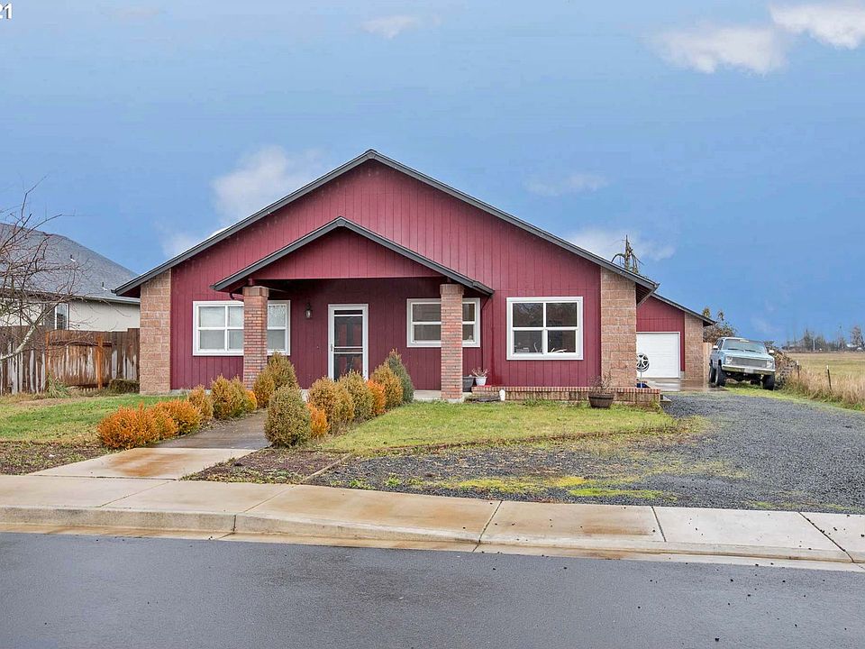 Come tour this one level beauty in the lovely town of Harrisburg, OR. Home is positioned on an oversized lot at the end of a dead end Street. Home over looks a large field and offers views of the Coburg Hills. Interior features; vaulted ceilings, dining nook, Gas furnace & range, large attic space, vinyl windows and much more. Enjoy abundant space for RV parking with an oversized Detached garage. Come see it today!