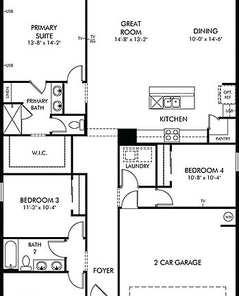 Prepare dinner with your family from this home's open kitchen which overlooks a spacious great room. White cabinets with Bengal White Granite countertops, Arena Casper Travertine-look tile flooring and warm grey carpet in our Crisp package.