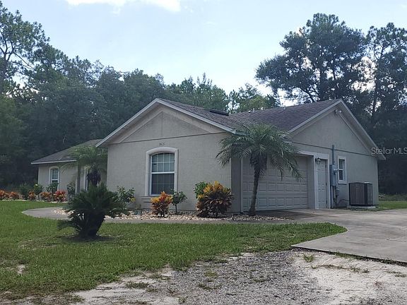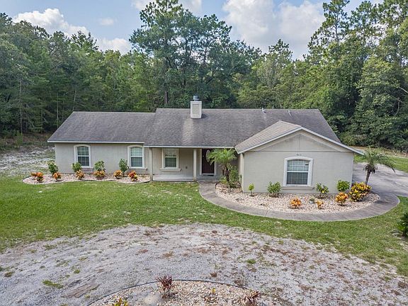 Very private, secluded 5 acre retreat in Lake Helen. Open Kitchen over looking large living area with wood burning fire place. Vaulted ceilings and ceramic tile flow throughout the kitchen and living area. Split bed room plan. Spacious master suite with large walk in closet. Covered lanai with sweeping views of lush, treed landscape. A/C is just one year old!! Amazing location in desirable Lake Helen. Close to schools, shopping, down town Deland, restaurants, major highways, hospitals, golfing and Florida's finest beaches.