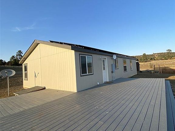 Solar system, ACREAGE, and a great home to live in permanently or if you want to build somewhere else on the parcel. This home is an incredible opportunity and an easy drive into town. This newer constructed home is on a permanent foundation, a flat area that use to be RV hookups, gated and fenced all the way around, and has been a great place for horses. The main bedroom is on one side of the house with an extra large suited bathroom with tub and shower, with the two other bedrooms on the other with their own bathroom. Back deck is trek decked and there is a nice mix of rolling pastures, and hilly oak gamble groves. There is a small barn that could be converted for smaller animals, or one horse (was used for hay storage) The well is good producing, the septic is in good shape, and the home has been cleaned. READY FOR YOU!