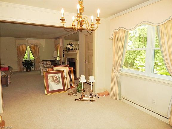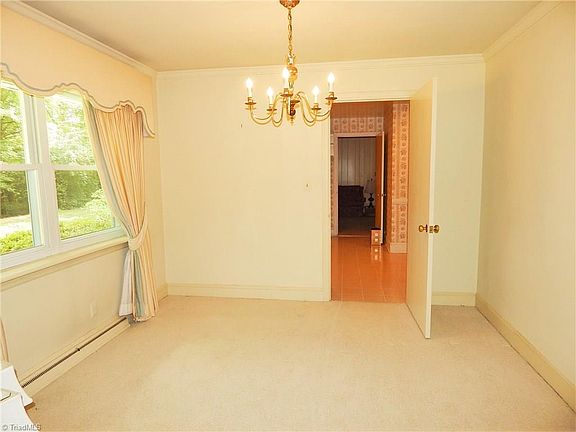 Brick ranch on over 4 acres! So much privacy yet convenient to shopping, restaurants & Hwy 220. Home is surrounded by beautiful woods & accessed by paved circle drive. Nice floorplan w/formal living room & den. Kitchen has breakfast area & doorway to dining room. Unique features include built-in shelves, cabinets & custom-built closet configuration in 2nd bedroom. Crown moldings in several rooms. Lovely brick patio overlooks back yard. 2 car attached garage has 18x5 laundry/utility room.