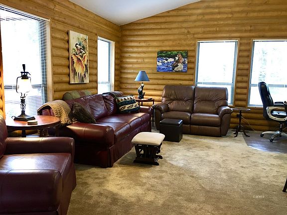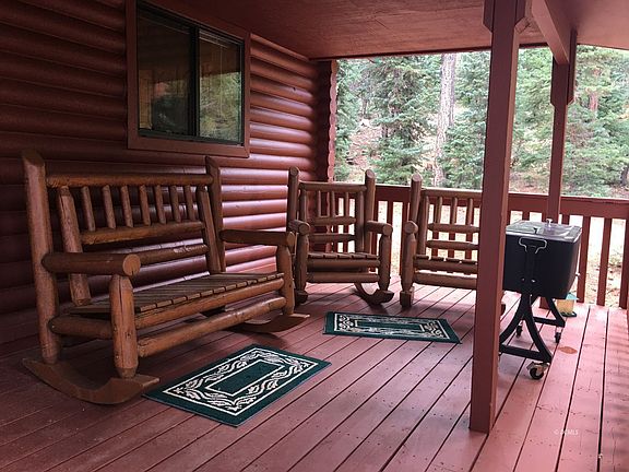 This one level log cabin has two covered decks for your outdoor enjoyment. The interior features two bedrooms, one full bath, wood burning stove, laundry facilities, The property comes turn key with all the interior and patio furniture included. A new refrigerator and washer/dryer stack unit were installed in August of 2022. The cabin exterior was recently repainted. A new 10' X 16' shed was built this past summer. It is neatly organized and has power wired to it. The circular driveway makes for easy year round access. You will enjoy the mountain experience you are looking for in this well maintained cabin surrounded by the majestic Ponderosa pines, fir and aspens.
