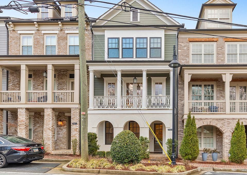 Welcome to this stunning 3-bedroom, 3.5-bathroom townhouse located in the heart of Downtown Roswell! As you enter on the terrace level, you'll find a 2-car garage, a spacious bedroom, and a full bathroom, offering convenience and privacy. The main floor boasts a welcoming common area with an open concept living/dining space featuring a cozy fireplace, built-in bookshelves, and a door leading to the covered front porch—a perfect spot to relax. On the opposite side of the main level, the kitchen is a chef's delight with white cabinets, stone counters, stainless steel appliances, and an island. Adjacent to the kitchen is a delightful sitting area with access to the uncovered back deck. A convenient half bathroom completes this level. Upstairs, the primary suite awaits, featuring his and hers walk-in closets and an ensuite bathroom with a sleek glass shower and dual vanities. Another bright and spacious bedroom on this level offers plenty of natural light and a private ensuite bathroom with a shower/tub combo. The upper level also houses a laundry closet for added convenience. This townhouse's perfect location in the heart of Downtown Roswell provides easy access to a myriad of shopping, dining, entertainment, and nightlife options. Don't miss the opportunity to make this stylish and centrally located townhouse your new home.