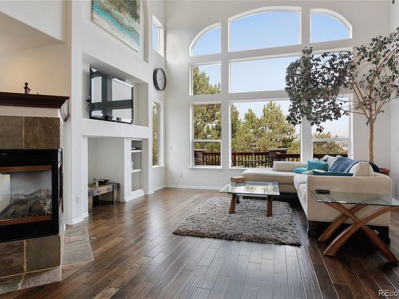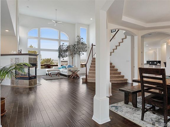 YOU MUST EXPERIENCE THE INCREDIBLE VIEWS FOR YOURSELF! Privacy and Views are the standouts of this stunning home, with high-end finishes. Backs to the 6th hole on Red Hawk Golf Course. Spend time relaxing on the huge private deck, drinking in the dramatic vistas of Castle Rock. This Spectacular home impresses from the moment you open the front door. Soaring ceilings, a wall of windows with spectacular views, and a chef's kitchen featuring matching Kitchenaid Artisan appliances. Perfect for entertaining. The large kitchen has been updated with granite countertops and subway tile. It opens to the large deck to watch the sunrise views. The family room has vaulted ceilings, another sitting area, and a double-sided fireplace. The upstairs has the spacious master suite with incredible views and an updated 5-piece bath. 2 more bedrooms with walk-in closets and bathrooms, as well as a loft (that could easily be converted to another bedroom or office). A large walk-out basement with high ceilings is just waiting to be finished off. 3-car garage, and a brand new solar system that's totally paid for! Located with easy access to I-25 and close to downtown Castle Rock, The MAC (Phillip S Miller Park), and The Promenade Shops. No Sunday deadlines.