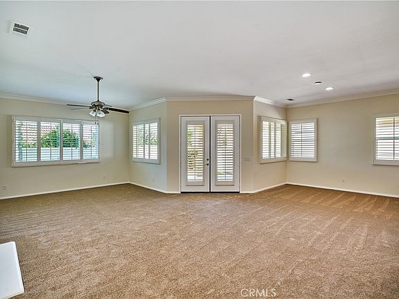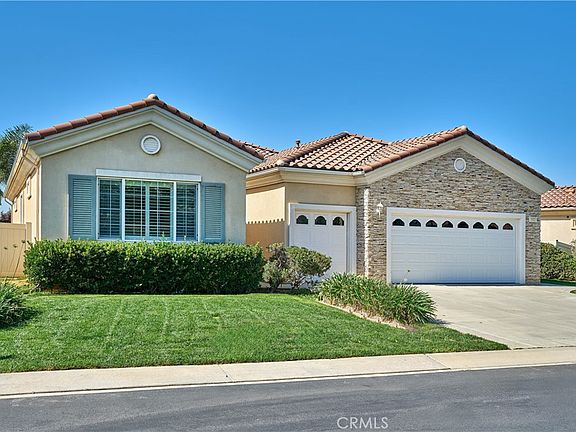 Spacious "Emerald" home with mountain views from the front yard in the gated 55+ community of Solera. BRAND NEW INTERIOR PAINT AND CARPET. BRAND NEW GARAGE DOOR. Move-in ready with 2,127 SqFt of living space. 2 bedrooms and 2.5 bathrooms with an extra den/office/anything room. Crown molding. Plantation shutters. Cool garage golf cart parking space. High interior ceilings. Solera is a 24-hour guard gated community with many activities and groups at the clubhouse. The Solera clubhouse has an indoor walking track, gym/fitness center, tennis courts, pool/spa, library, bocce ball court, banquet/meeting/card rooms and pool tables. The community is just off the 10 freeway with short drives to Cabazon outlet shopping, Morongo Casino, golf courses, Palm Springs, Redlands and the scenic mountain town of Oak Glen. Welcome to the good life!
