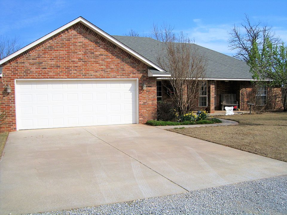Welcome Home!! This wonderful home is out in the country. Enjoy the peaceful wooded backyard from the Beautiful spacious Florida/Sun room. Has many extras. The kitchen has beautiful custom cabinetry. The Master Bedroom is spacious with a Safe room, that's metal encased and tornado-proof. The Master also has a nook area. The Fireplace is a ventless and has custom built-in shelves. This wonderful home also has a beautiful landscaped back yard with an extra huge 2 car garage/outbuilding. Perfect for 4 car families or for ATV's, RV or boat. Home is 1 mile away from I-44 exit, and just minutes to Mustang or Norman. Must see!!