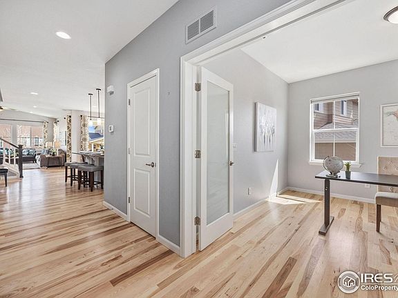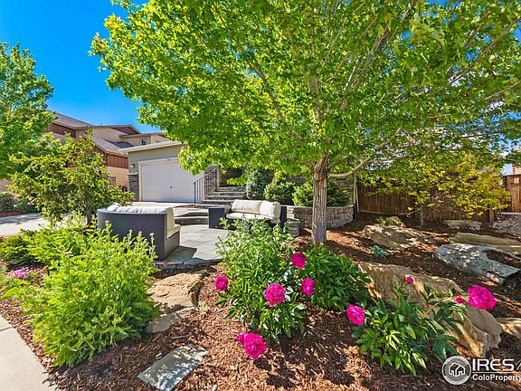 Welcome to 965 Magpie Ln in the coveted Steel Ranch neighborhood! Situated across from the park, this home comes complete with sophistication and a touch of sass! You will immediately notice the front courtyard where you can take in the beauty of nature while surrounded by colorful blooms. Entering the home, the main floor flawlessly flows led by the gorgeous, refinished hickory hardwood floors. The wide foyer is flanked by the private home office. Next is the gourmet kitchen with custom granite, stainless appliances, walk in pantry, and a huge island perfect for entertaining. A spacious dining area right off of the kitchen completes this space. The living room has surround sound and is flooded with natural light, a perfect place to spend time together or light the fireplace during those Colorado winters. There's a convenient main floor guest bedroom and bathroom as well! There's also a hobby/craft/flex room just for the Maker. The upper level features the beautiful primary bedroom and ensuite bathroom. There's a fantastic loft, 2 additional bedrooms, a bathroom and laundry. The custom finished basement with 9' ceilings is full of personality starting with surround sound in the huge family/game room! A cozy built in reading nook is situated under the stairs! There is a SECRET bookcase door that leads to a huge storage room, a darling kitchenette, one more bedroom and bathroom. You will also enjoy the spacious, manicured backyard including a covered patio, raised garden beds, and mature landscaping. There is a whole house humidifier and built in radon system. The oversized 3 car garage is a real treat, perfect for all of your toys! 14 month Home Warranty included!