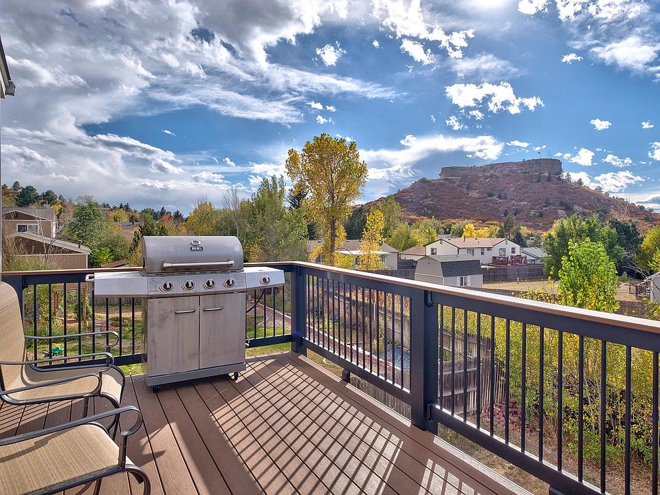 BEAUTIFULLY UPDATED HOME WITH STUNNING VIEWS OF CASTLE ROCK! This immaculate 4 bedroom 3 bath boasts rare, sweeping views of the mountains and the famous Castle Rock. With light filled interior spaces and a spacious, inviting floor plan, the home is perfect for a casual, family lifestyle. Many thoughtful improvements have been made, including a remodeled kitchen, brand new Trex deck, fresh interior with new paint. The beautifully remodeled kitchen will bring out the inner chef with slab granite, cherry cabinets, stainless appliances and a window that showcases the amazing views. Perfect for fun, family gatherings, the large living room offers a cozy brick fireplace. The upper level is comprised of 3 bedrooms and 2 baths, including the relaxing master retreat with a wall to wall closet and forever mountain views. You will appreciate the versatile lower level which hosts an expansive family/recreation room with fireplace, bedroom, bath and an extra storage room with built-in shelving. This picture perfect outdoor setting will make you feel like you are on top of the world! Relax on the beautiful deck as you take in the panoramic Rocky Mountain views. The yard is fully fenced and offers a covered patio. Steps from scenic Rock Park, offers fantastic hiking. Close proximity to Castle Rock Community Recreation Center and to neighborhood schools. Quick commute to the Denver Tech Center (30 minutes) or downtown (45 minutes). Professionally managed by Rivendell Real Estate.