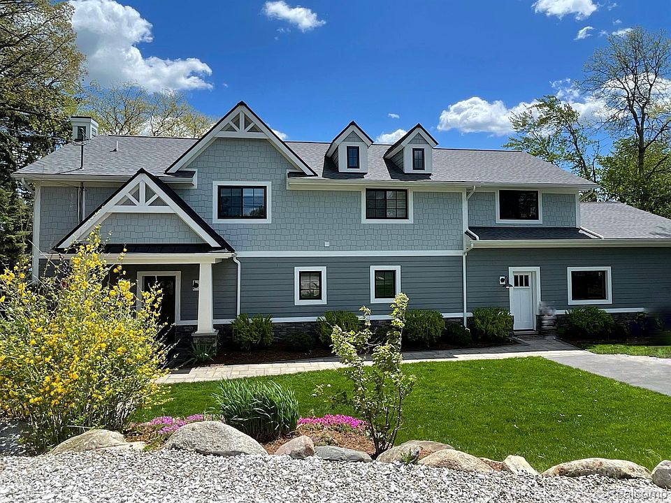 Nestled beneath the towering pines on one of Lake Orion's most desirable streets, welcome home to 965 Pine Tree West. This stunning Dollar Bay lakefront property has recently undergone a large, professional upper addition bringing the total square footage to 3,423 square feet. This home features a stunning open concept main entry level which provides for an awesome entertainment space spilling out onto the newer, sun-drenched brick paver patio with outdoor gas fire pit, and fenced yard overlooking the water. The kitchen will delight any chef with all built-in stainless steel appliances, tons of cabinet and counter space, and a spacious wet bar with a built-in bar refrigerator. The great room which flows off of the kitchen features a gorgeous gas fireplace and spans the entire back of the home allowing for full lakefront views. Upstairs you will find 3 large bedrooms including a massive primary suite with a huge walk-in closet, full bath with dreamy shower and separate soaking tub, and it's own private and covered balcony to unwind after a long day. Additional upper rooms are currently used as a game room and office flex space, but could easily convert into a 4th and 5th bedroom. The new homeowners will appreciate the upper laundry room perfectly situated between all of the bedrooms making laundry chores a breeze! Additional storage can be found in the upper attic space with it's own flight of stairs (off of the office/flex space) and expansive 3.5 car attached garage. There is also a shed located on the side of the property. This combo of beauty, newer construction, 112' of lake frontage, tons of storage and garage amenities are a rare find on Lake Orion. Be sure to set up your private tour today! BTVAI.