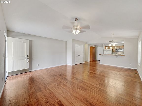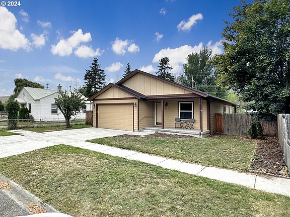 This newer, nicely maintained home has three bedrooms and two bathrooms all on one level. The master bath has a walk-in shower and you'll find very minimal steps throughout the house. Outside, a comfortable covered patio opens to a private, fully fenced back yard with walk-through gate access to a lightly traveled street behind the house. Just a short distance to the end of the Leo Adler Parkway, the Powder River and the Wade Williams Little League field, this quiet location has lots to offer.