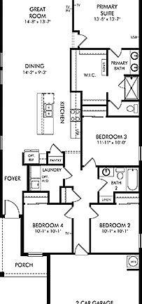 Open kitchen, dining, and great room that flow to the patio. The primary suite is tucked in the rear of the home for privacy. Simply White Quartz countertops, Skybridge Gray brushed-look tile flooring and multi-tone tweed carpet in our Sleek package.
