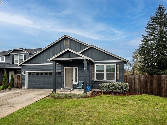 This charming single-story Craftsman-style home is nestled in the heart of Cottage Grove, Oregon, offering a tranquil escape with modern amenities. The home’s inviting kitchen features beautiful granite tile countertops, sleek stainless steel appliances, and plenty of cabinet space for storage. Enjoy casual meals or gather around the kitchen bar for a cozy conversation. A spacious pantry adds convenience, making this kitchen as functional as it is beautiful. The primary bedroom is a true sanctuary, complete with a generous walk-in closet and a dual vanity bathroom, offering both comfort and style. The thoughtful design of this home is evident in every corner, from the well-appointed laundry room to the seamless flow of space throughout. Step outside to a large backyard, perfect for enjoying the outdoors. Relax in the hot tub or swim against the current in the above-ground resistance pool. The expansive deck provides ample space for outdoor entertaining, while the raised garden beds invite you to embrace your green thumb. A handy tool shed in the backyard offers additional storage space for gardening tools and outdoor equipment. Located near the historical Chambers Covered Railroad Bridge, this home combines the charm of Cottage Grove with the convenience of being close to local amenities and scenic views. Whether you’re enjoying the tranquility of your backyard or exploring the nearby countryside, this home offers the ideal blend of comfort and community.