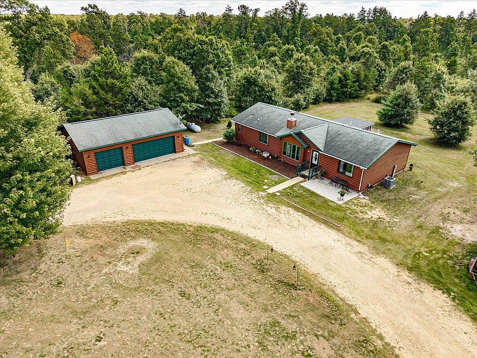 Welcome to your private retreat! This 3 bedroom, 2 bath log home is nestled on about 3 acres surrounded by mature trees and a long driveway that gives you the peace and privacy you?ve been looking for. Step inside and enjoy the large open kitchen, perfect for cooking and gathering, along with a cozy fireplace that makes the living space warm and inviting. The main floor laundry adds convenience, and the jetted tub offers the perfect place to relax after a long day. The property also features a 3-car detached garage, giving you plenty of space for vehicles, tools, and toys. Recent updates: furnace to be completed on 09/07, a new water heater (2023), new AC & furnace (2025), new dishwasher & washer (2024), and a new dryer (2025).